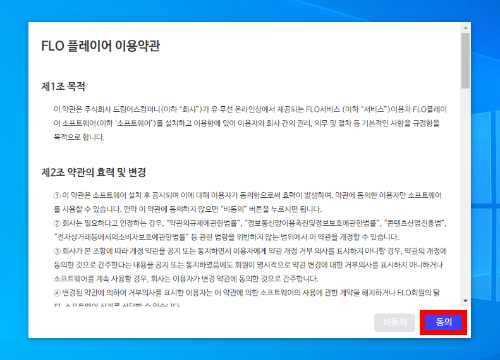 2. 받은 파일(파일명 : FLO_v1.0.7_win_release)을 더블클릭 하면, 설치 마법사 창이 열립니다. 설치 폴더 지정 후, "설치" 버튼을 누르면, 자동으로 설치가 진행됩니다.