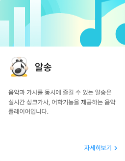 알송의 최대 강점은, 무료이면서 가사와 함께 PC에서 즐길 수 있는 음악 재생 프로그램이라는 점입니다. 무료로 알송을 설치하시고 즐거운 음악감상하시기 바랍니다.