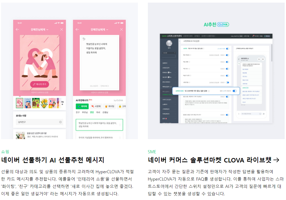 챗봇, 검색, 스피커, 음성인식, 플랫폼, 1인가구 케어, 리뷰, 쇼핑, 네이버 커머스 마케팅 등 다양한 분야에서 네이버 AI "하이퍼클로바 X를 활용하실 수 있습니다.