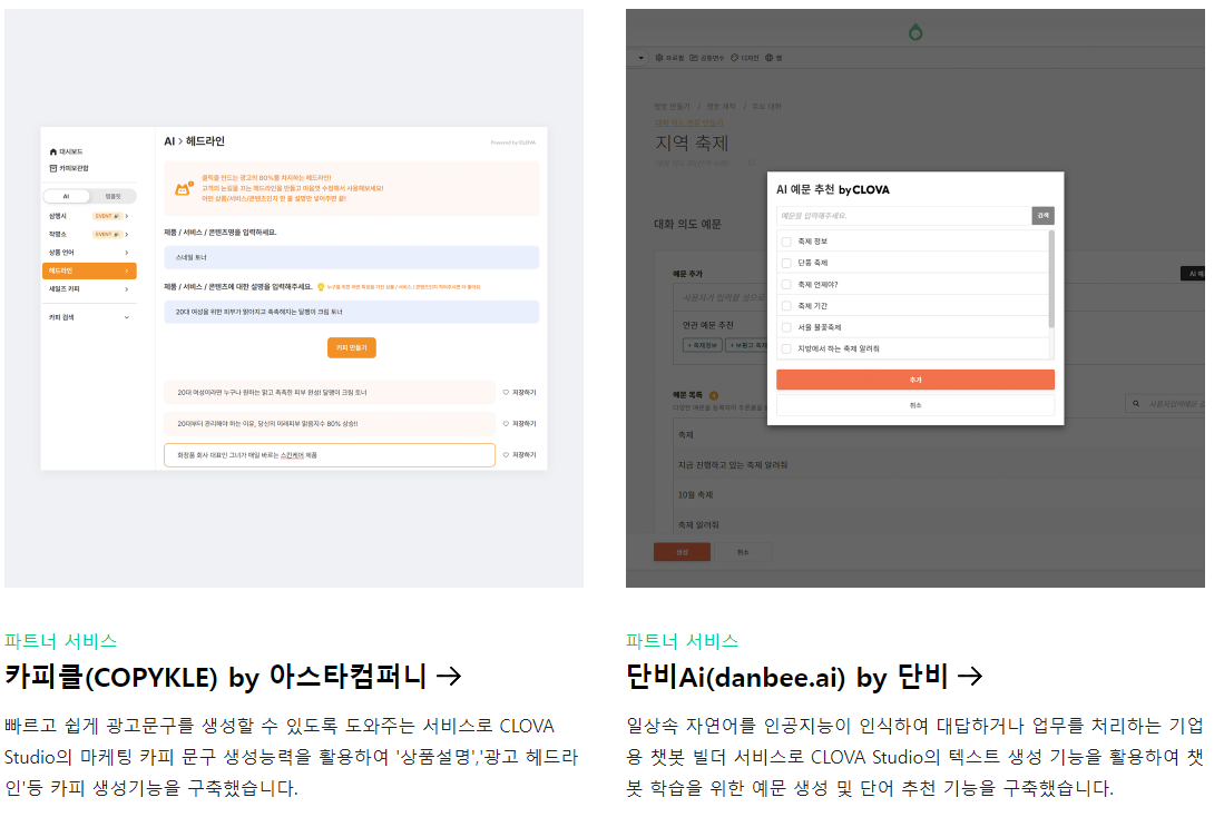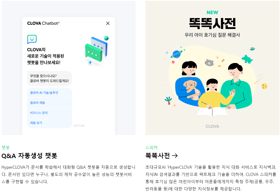 그리고, 사용자가 원하는 다양한 영역에서 활용이 가능하며, 코딩, 검색, 요약, 쓰기, 읽기 등 사용자 편의에 맞게 커스텀하여 활용할 수 있습니다. 또한 클로바 스튜디오를 통해 전문적인 엔지니어의 도움이 없어도 데이터를 손 쉽게 결합하여 AI 모델을 만들 수 있습니다.