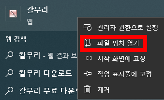 3. 설치가 끝나면, "마침" 버튼을 누릅니다. 이제 설치가 완료습니다. 이제 바탕화면에 아이콘을 추가 하겠습니다. 윈도우 화면 왼쪽하단에 "칼무로"로 입력을 한 후, 검색을 하면, 앱이 보입니다. 앱에 마우스 오른쪽 버튼을 누리고 파일 위치 열기를 클릭합니다. 그러면 바로가기 아이콘이 보이며, 복사 후 바탕화면에 붙여 넣으면, 추가됩니다. 모든 과정이 완료되었으며, 더블클릭하면 프로그램 실행이 됩니다.