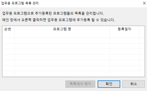 5. "업무용 프로그램 관리"를 누르면, 직장이나 필수적으로 사용해야하는 프로그램을 관리하실 수 도 있습니다.
